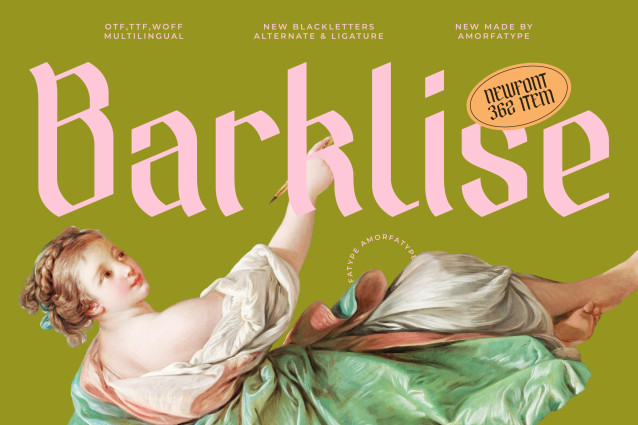 Whether used in large-scale typography or detailed compositions, Barklise adapts with strong personality and visual impact, making it a favorite choice for designers looking to evoke boldness with a modern twist.