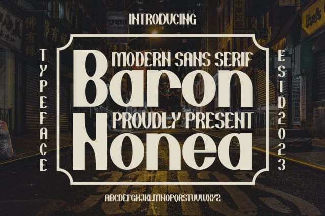 Baron Nonea Font – Modern Font is a bold and authentic display font. The font is suitable for any branding projects such as logo, t-shirt printing, e-sports, etc. It stands out in a wide range of contexts.