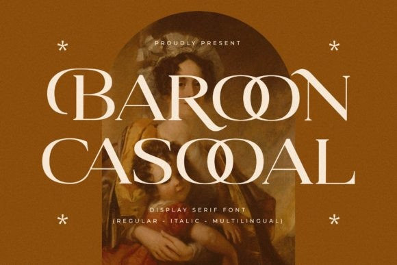 Baroon Casooal Font, created by Storytype, a serif modern and classic typeface that has own unique style & modern look. This typeface is perfect for an elegant & luxury logo, book or movie title design, fashion brand, magazine, clothes, lettering, quotes, and so much more.