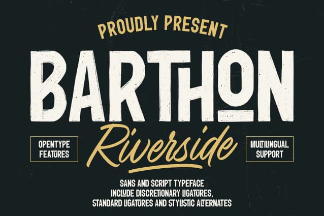 Barthon Riverside is a stylish and versatile font duo featuring sans and flowing script typeface. This perfectly complementary pair combines modern and stylish , offering endless possibilities for creative projects. Whether used together or independently, BarthonRiverside strikes a perfect balance between bold sophistication and delicate charm.
