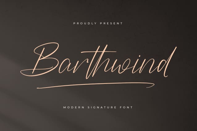 Barthwind Signature Font , from Letterena, is a Luxury Script font, suitable for any projects such as: logos, branding projects, homeware designs, product packaging, mugs, quotes, posters, shopping bags, t-shirts, book covers, name card, invitation cards, greeting cards, label, photography, watermark, special events, and all your other luxury and beautiful projects that need a Luxury Script taste.