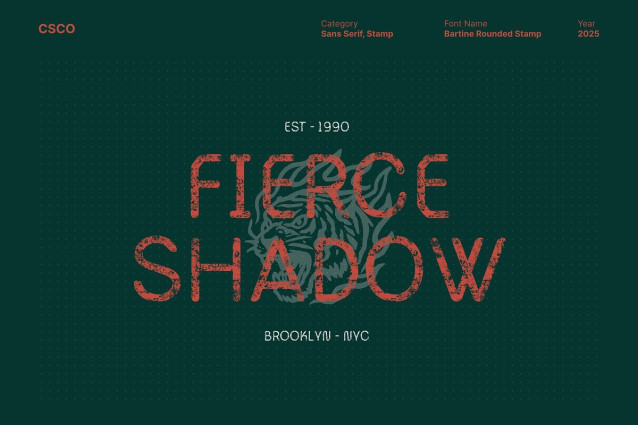 Bartine Rounded Stamp Font is a rugged sans serif font that combines industrial strength with refined rounded shapes. Its bold, structured form exudes confidence and reliability, while the softened edges bring a sense of balance and approachability making it ideal for branding, posters, and packaging that aim to stand out with personality.