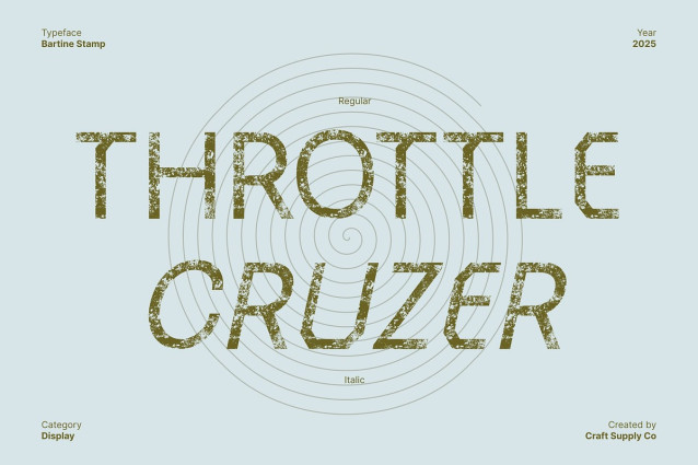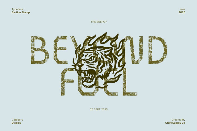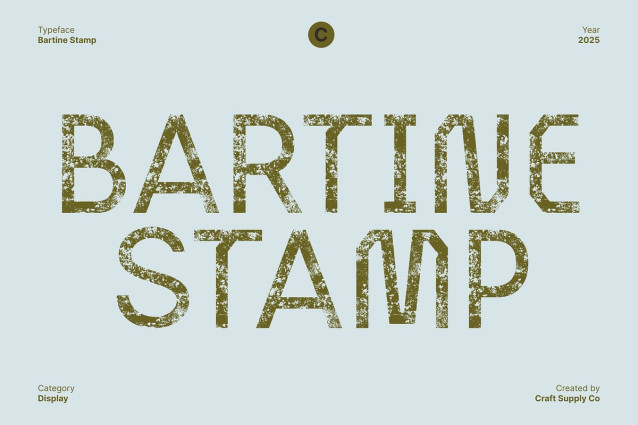 Bartine Stamp Font is a rugged sans serif font that blends industrial precision with a modern handcrafted edge. Its strong, geometric structure conveys confidence and durability, while subtle imperfections add depth and authenticity. This balance of power and artistry makes it perfect for projects that demand a commanding yet creative presence.