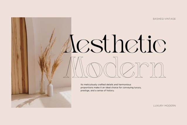 Basheq Font an elegant serif font that exudes sophistication and refinement with a timeless and graceful design. Characterized by delicate serifs, this font boasts a delicate balance between thick and thin strokes, giving it an elegant and easy-to-read feel. The classic and ornate style of this font is perfect for high-end branding, editorial design and formal invitations, seamlessly blending tradition with a modern aesthetic.