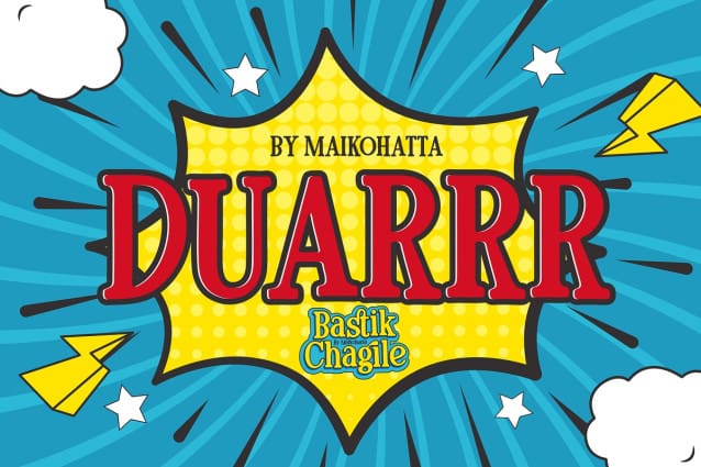 Bastik Chagile Font – Serif Comic Display Font. This font is characterized by reflecting joy, cheerfulness and a light atmosphere with a handwritten style often found in comics or cartoons. This font is perfect for projects that want to highlight elements of playfulness and fun, such as poster designs, invitation cards, comics, or promotional materials aimed at a younger audience or those looking for a fun feel.