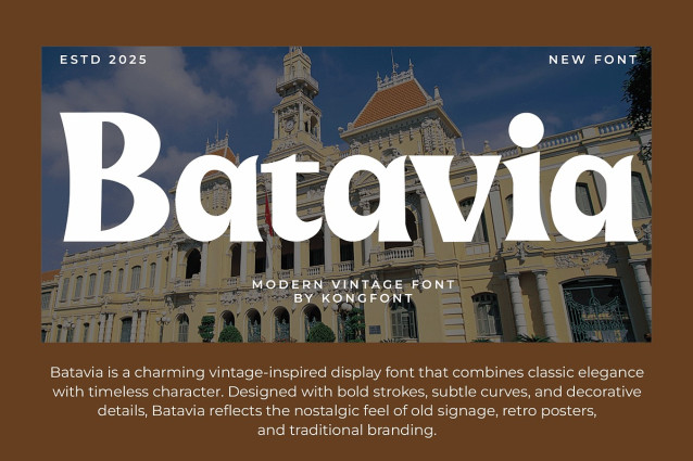 Batavia Display Font a modern vintage font that seamlessly blends nostalgic charm with a fresh, contemporary feel. Inspired by timeless retro typography yet refined for today’s design needs, Batavia brings a perfect balance of classic curves and modern precision.