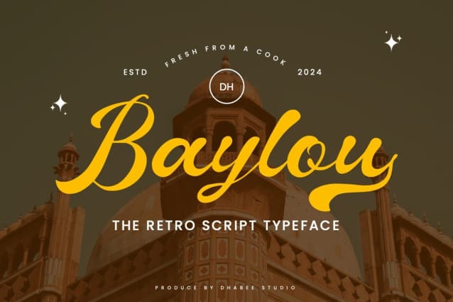 Baylou Retro Font is used only for demos (Demo license). If you want to use this font for commercial use please contact: https://creativemarket.com/habibie.habibie1532/279794920-Baylou-Retro-Script-Font?u=fontlot123