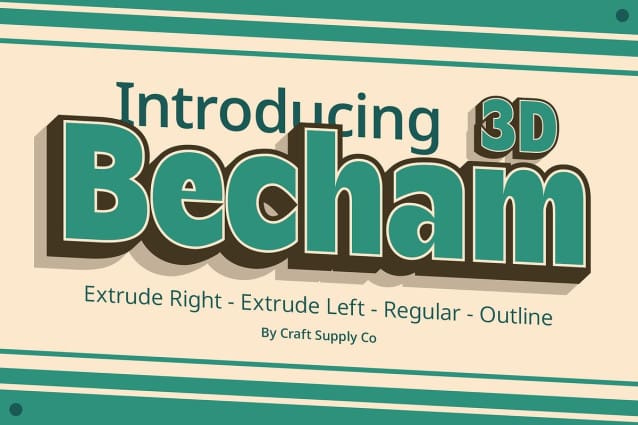Becham 3D Font: Elevating Simplicity with Dimension. Dimensional Simplicity Becham3D, a sans-serif display font, takes simplicity to new heights with its basic shapes enhanced by captivating 3D effects.