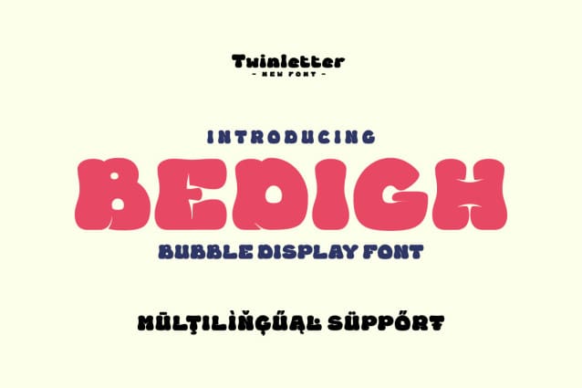 Bedigh Buble Font, this Playful Display Font is brimming with energy and personality, with each letter dancing across the canvas in a delightful display of creativity.