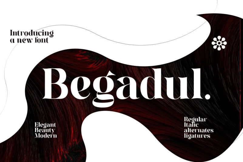 Begadul Font is an elegant serif font with a contrasting thickness, very suitable for displays such as titles, greeting cards, magazine covers, and many more. This font will be a great addition to your library, as it will make every design a true piece of art.