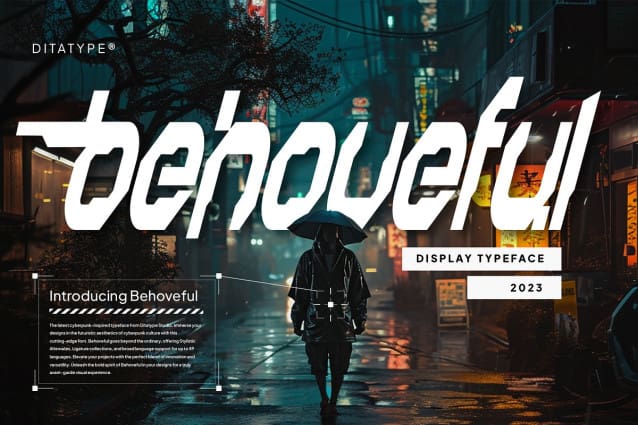 The uneven outline of Behoveful adds an element of visual interest and depth, further enhancing its futuristic allure. This irregularity in the outline creates a sense of movement and energy, making each character feel alive and dynamic.