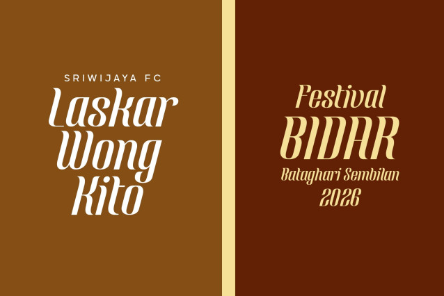 Its sharp pointed terminals take inspiration from the Tanggai nail adornments featured in Tari Tanggai, a traditional dance from Palembang, Indonesia. The slanted stance and graceful curves echo the gentle waves of the Musi River, giving the letterforms a sense of motion and fluidity.