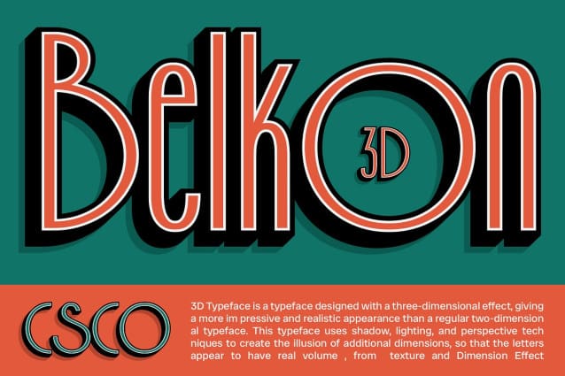 Versatile for Striking Visual Projects Whether used for branding, posters, or promotional materials, Belkon 3D’s unique blend of vintage charm and modern flair ensures a memorable and impactful presence. It’s perfect for designers looking to create visually engaging projects that blend classic elegance with modern innovation.