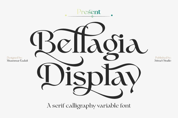 NOTE : This Demo and Personal Use only, commercial license and full version of this font can be download here: https://creativemarket.com/AttractStudio/7372359-Bellagia-Display-Variable-Font