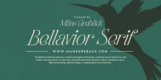 The family includes three distinct variants. Bellavoir Serif with its simple, lean, and crisp look; Bellavoir Delight, a more ornate and decorative version; and Bellavoir Swash which features more generous curves and flourishes. All the fonts share the same design structure, so that they seamlessly can be mixed and matched, depending on the kind of atmosphere you are going for. The fonts would work wonders on book covers, magazines, wedding invitations or labels for wines and other premium goods.