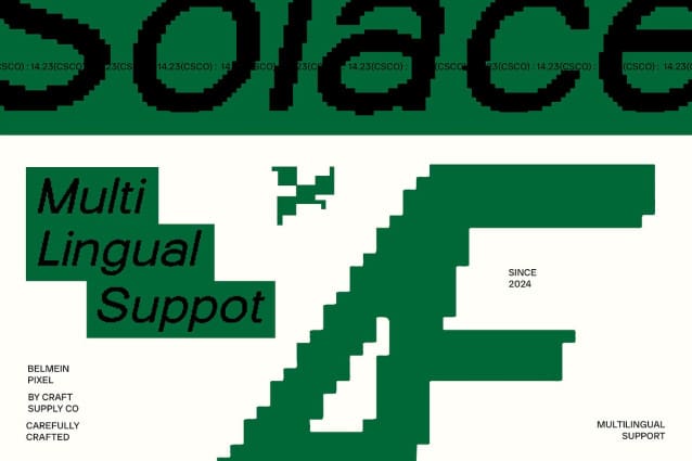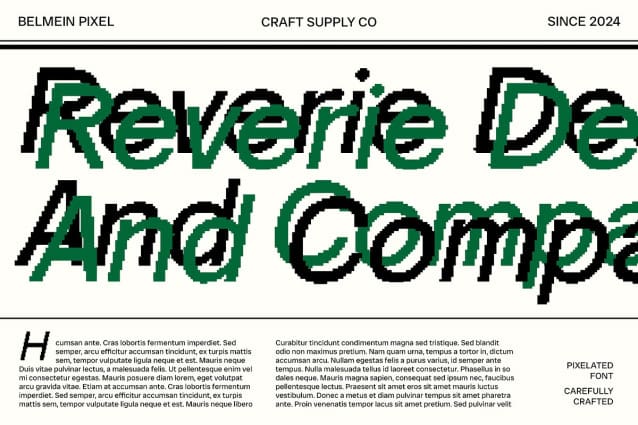 Belmein Pixel Font is a modern sans-serif font that fuses grotesque elements with sharp inktrap details and pixel effects. Its solid grotesque form and precise inktraps convey an industrial and futuristic aesthetic, while the pixel effect adds a nostalgic, retro digital vibe.