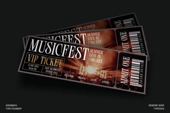 Bemore Serif Font is a decorative serif font that has a distinctive serif shape. This font has sleek and tall condensed letter proportions so it can give an attractive and elegant impression. You can use this font in both modern and vintage designs. This font is suitable for attractive packaging label designs, unique desired logos, trendy poster designs, fashion, and many more.