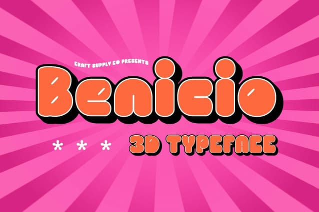 Ideal for Childrenâs Materials and Playful Branding With its friendly and approachable look, Benicio 3D is perfect for designs aimed at children or projects that require a sense of playfulness and lightheartedness. Whether youâre working on childrenâs books, toys, posters, or playful branding, this font adds a dynamic and engaging presence to your designs. Its 3D effect makes it stand out, ensuring that your message gets noticed in an energetic and fun way.