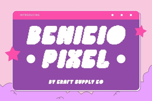 Perfect for Posters, Branding, and Childrenâs Designs Benicio Pixelâs bold, rounded forms ensure excellent readability while still capturing attention. Itâs perfect for creating eye-catching posters, playful branding, and cheerful childrenâs materials. The pixel effect adds an element of nostalgia, making it a great choice for retro-inspired yet modern designs.