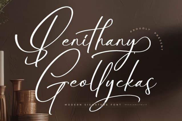 Benithany Geollyckas Font – Modern Signature Font , from Letterena, is a Luxury Script font, suitable for any projects such as: logos, branding projects, homeware designs, product packaging, mugs, quotes, posters, shopping bags, t-shirts, book covers, name card, invitation cards, greeting cards, label, photography, watermark, special events, and all your other luxury and beautiful projects that need a Luxury Script taste.
