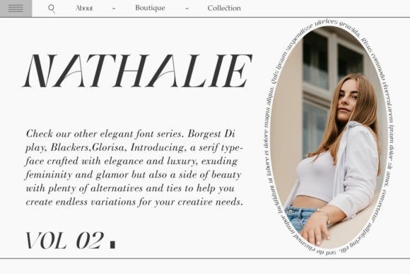 Its striking contrasts and subtle details, together with luxurious strokes and voluptuous curves, create a beautiful and powerful statement for any typographic composition, blending glamor with contemporary aesthetics.