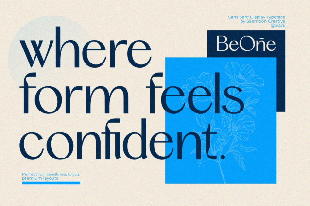 Beone Sans Font is a modern sans serif display typeface built with a clean structure and a confident, contemporary personality. Its balanced proportions, smooth curves, and precise details create a refined look that feels both professional and expressive.
