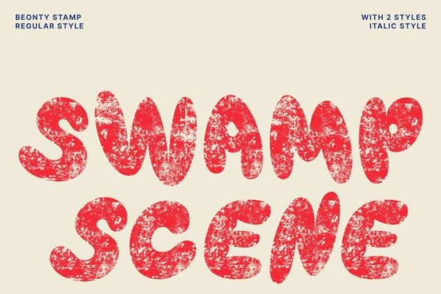 What makes this font truly stand out is its artistic stamp effect, giving each letter a unique handcrafted look. The textured finish creates a nostalgic, worn-in feel reminiscent of retro printing methods. This blend of bubble shapes and vintage texture produces a warm, expressive aesthetic that feels both playful and timeless ideal for adding emotional depth to visual storytelling.