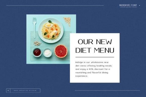 Berdiate Font, a modern sans-serif typeface, embodies the essence of contemporary design with its clean lines, geometric precision, and a touch of minimalist sophistication. Its letterforms are meticulously crafted to achieve optimal legibility and versatility across various design applications. The absence of decorative serifs and the sleek, uniform strokes contribute to a sleek and streamlined appearance, making Berdiate ideal for conveying a sense of modernity and clarity.
