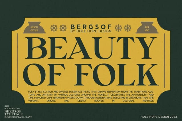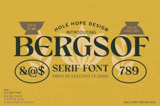 Bergsof Font is a serif classic elegant font that typify timeless and grace with unique refinement of serifs – those small decorative strokes. It seamlessly blends the elegance of serifs with classic air.
