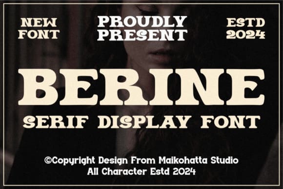 Berine Font – Serif Display Font. This font has a series of small or decorative projections called serifs at the ends of its characters. Serifs provide a more formal, classic, and easy-to-read appearance to printed text. Serif fonts are often used in formal documents, books, and print publications because of their good legibility at small text sizes.