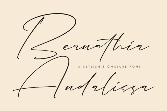 Bernathia Andalissa Font – Stylish Signature Font, created by Storytype. A luxury script that has own unique style & modern look. This typeface is perfect for an elegant & luxury logo, book or movie title design, fashion brand, magazine, clothes, lettering, quotes, and so much more.