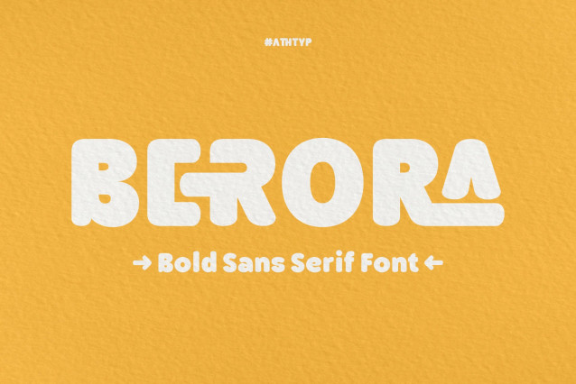Berora Font is a bold sans serif font designed with a playful spirit and a warm, modern personality. Its rounded, chunky shapes create a friendly impression while maintaining strong visual impact, making it perfect for designs that aim to feel cheerful, energetic, and attention-grabbing.