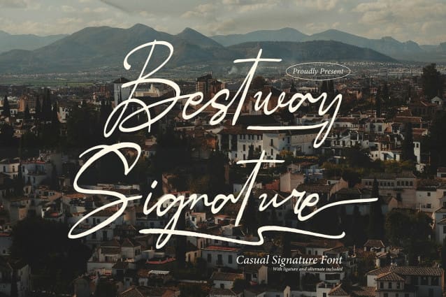 Bestway Signature Font | Casual Signature, from Denustudios, suitable for any projects such as: logos, branding projects, homeware designs, product packaging, mugs, quotes, posters, shopping bags, t-shirts, book covers, name card, invitation cards, greeting cards, label, photography, watermark, special events, and all your other lovely projects that need a Casual Signature taste.