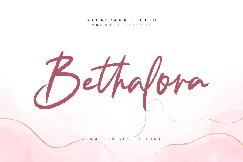 Bethalora Script Font is a modern script font with natural and clasic feels. It will be perfectly used for Branding, Logo Design, Lettering, Logotype, Clothing, Poster, magazine, packaging, posters, shopping bags, t-shirts, book covers, photography, special events and other design project.