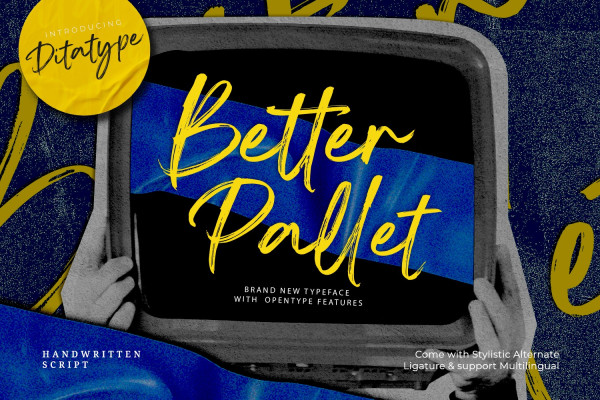 The continuous handwriting style of Better Pallet ensures that each letter flows gracefully into the next, creating a harmonious and aesthetically pleasing look. The brush details add depth and character, making every word a work of art. For the best legibility you can use this font in the bigger text sizes. Enjoy the available features here.