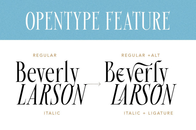 Beverly Walters Font is an elegant and artistic serif font that blends classic sophistication with modern flair. With its graceful curves, dramatic strokes, and stylish alternates, this font adds a luxurious feel to any design. Perfect for branding, fashion editorials, wedding invitations, and high-end packaging, BeverlyWalters is crafted for creators who seek timeless beauty and contemporary edge. Includes unique ligatures and alternates to elevate your typography game.