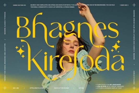 Bhagnes Kirefoda Font, is unique modern chic sans font with unique swashes. Masterfully designed to become a true favorite, this font has the potential to bring each of your creative ideas to the highest level! It was purposely crafted to be used in large point sizes, although it doesn’t lose its magic in small point sizes.