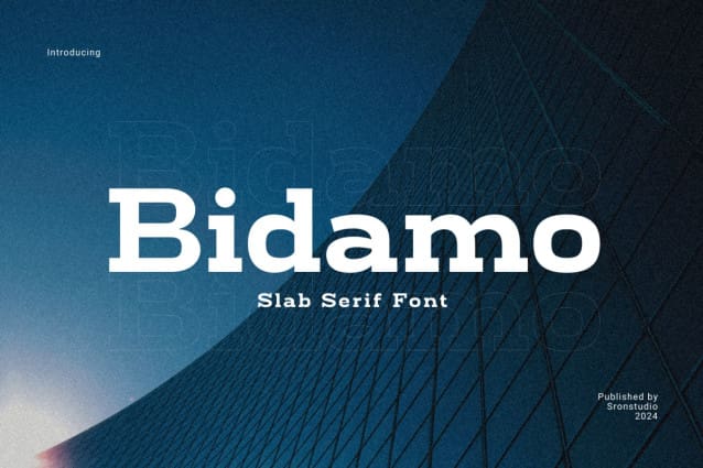Bidamo Font, a bold modern slab serif font designed to make a powerful statement. With its strong, geometric letterforms and contemporary style, “Bidamo” is perfect for headlines, logos, branding, and posters. This font combines the solidity of slab serifs with a modern twist, offering versatility and impact. Elevate your designs with the robust and striking presence of “Bidamo,” ensuring they capture attention and leave a lasting impression.