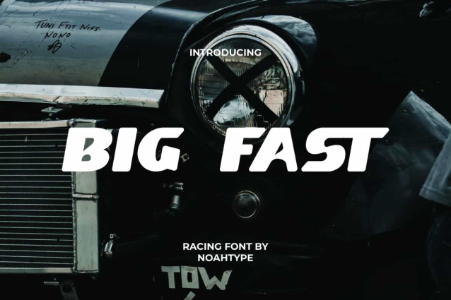 Big Fast Font is a fun, strong yet stylish racing sporty display font from NoahType. This font has a basic style so it can be used in a variety of designs and paired with other font types. It will be perfect for any projects, such as stationery, custom design, signage, invitation, label, brand image, cover, menu, poster, printing, product packaging, quotes, website, and many more!
