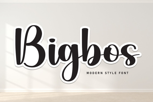 Bigbos Script Font A popular and professional script font. Modern and elegant, this typeface is made of beautiful creative strokes.This font is perfect for your creative ideas, both formal and informal. It has a modern style with a touch of creative ideas that is very suitable to be applied anywhere that requires creative ideas such as invitation cards,letterheads, website logos, social media, banners, advertisements, brochures, packaging products, leather products, and any product that requires writing.
