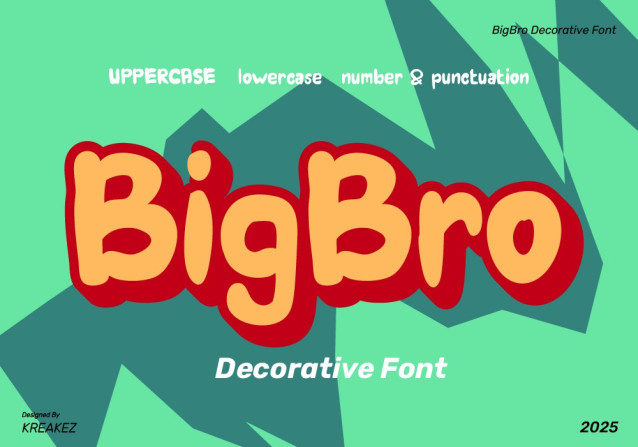 BigBro Display Font is a chunky, comic, and cartoon display font. With its neat and joyful personality, this font will enhance any project you wish to create!