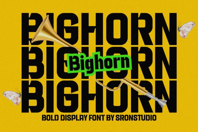 Bighorn Font, a modern bold font that exudes strength and confidence. With its powerful and robust design, “Bighorn” is perfect for making a bold statement in headlines, logos, posters, and branding projects. Its strong lines and commanding presence will ensure your message stands out with authority and style. Make an impact with “Bighorn.”