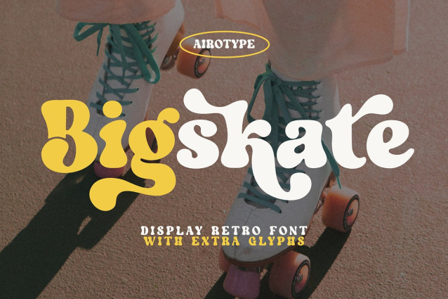 Bigskate Retro Font is cute serif font with vintage and retro touch. It has 70s and 80s look in modernity. Bigskate has alternative extra characters that can be accessed with Font Book (Mac) or Character Map UWP (PC).