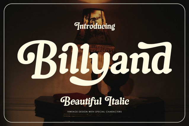 Billyand Font a refined vintage italic typeface that fuses classic italic lettering with bold character and decorative flair, delivering a look that feels both elegant and confident.