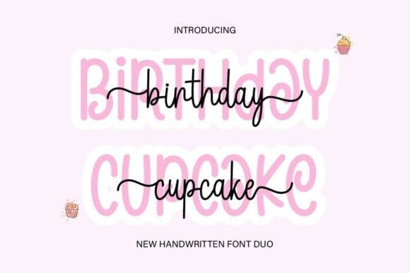 Birthday Cupcake Font Duo a stylish and delicate duo font (sans serif and script) suitable for a wide spectrum of applications. From greeting cards to headlines, this font will guarantee a romantic touch to each of your creations! Birthday Cupcake Duo is PUA encoded which means you can access all of the glyphs and ligatures with ease.