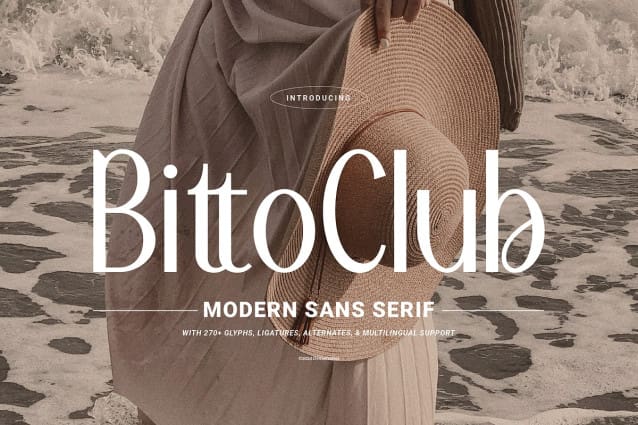 Bitto Club Font | Modern Sans Serif, from Denustudios, suitable for any projects such as: logos, branding projects, homeware designs, product packaging, mugs, quotes, posters, shopping bags, t-shirts, book covers, name card, invitation cards, greeting cards, label, photography, watermark, special events, and all your other lovely projects that need a Modern Sans Serif taste.