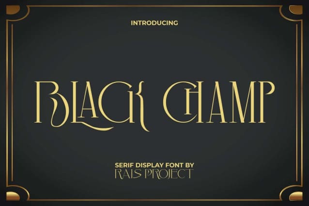 Black Champ Font is an elegant modern yet sporty serif display font with the looks that will makes your design so fancy! It will be good for any designs, such asbrand logo, business card, cover, custom design, invitation, label, magazine, menu, poster, product packaging, quote, signage, web, and more!