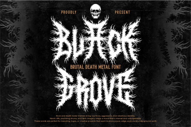 Black Grove Extreme Black Metal Font works best in projects that demand a dark, brutal, and uncompromising tone. It is ideal for band logos, album covers, music merchandise, event posters, and hardcore branding. The aggressive silhouette ensures strong visibility at large sizes, especially for headlines and logos. Designers can also use it for horror movie titles, underground zines, extreme sports graphics, and rebellious apparel designs. Despite its chaotic style, spacing remains controlled enough to maintain legibility in short phrases. Black Grove Extreme Black Metal Font delivers a powerful identity for creators who want to express darkness, aggression, and raw energy without compromise.