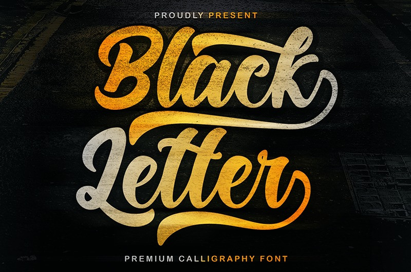 Black Letter Script Font, is a beautiful yet casual calligraphy logotype font, perfect for giving your logo treatments a refined and retro appeal. This font is bold and swashy and can add some expression to your works.