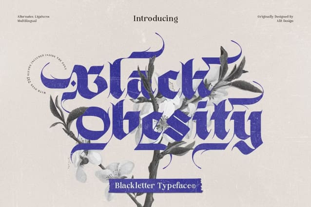 This font is made for personal use. Get the full version of the fonts if you want to use it for commercial purposes by purchasing the licenses here: https://creativemarket.com/alitdesign/92197104-Black-Obesity-Blackletter-Font?u=fontlot123